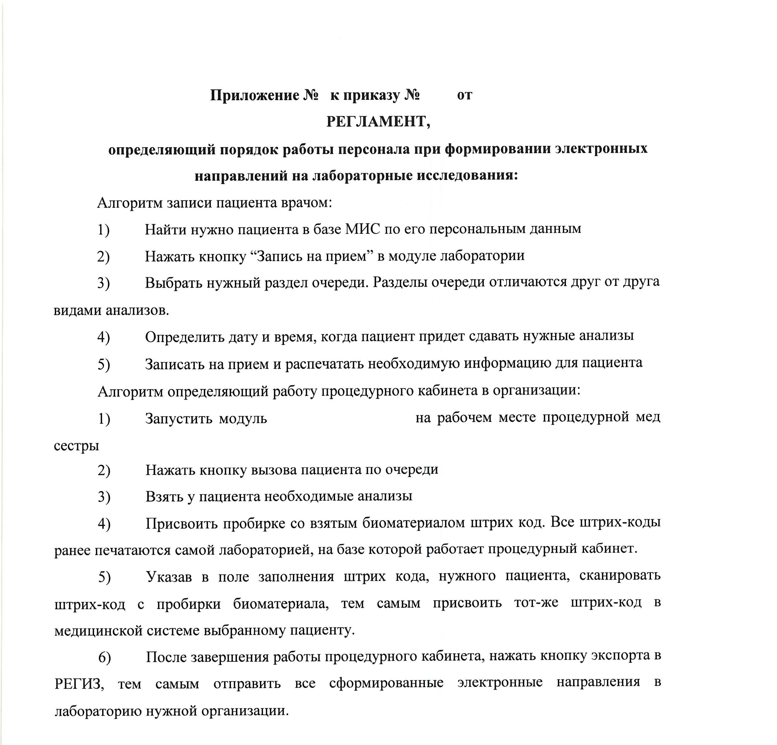 Пример внутреннего порядка работы персонала при формировании электронных направлений на ЛИ